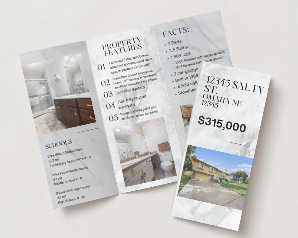 Booklet Components – Booklet components are subject to materials provided by the agent or available through MLS. If certain elements (such as floor plans) are not accessible, the booklet will be formatted using the available listing components.