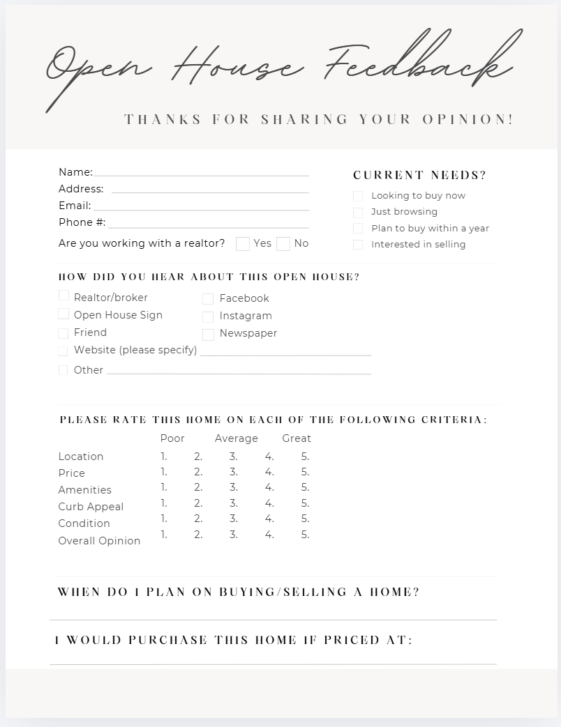 Open House Packet: