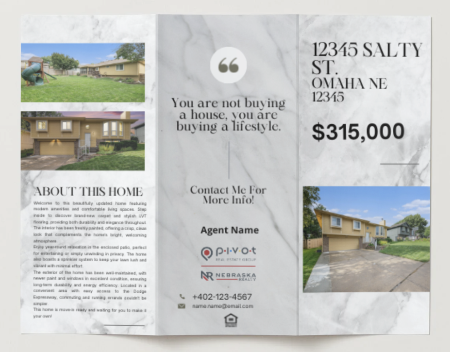 Agents are welcome to submit custom materials if preferred. All custom submissions will be reviewed for alignment with branding, advertising standards, and regulatory requirements. If refinements are needed, we will reach out prior to distribution. To maintain scheduled turnaround timelines, submissions not updated within the designated review window may default to the standard Listing Dispatch template.