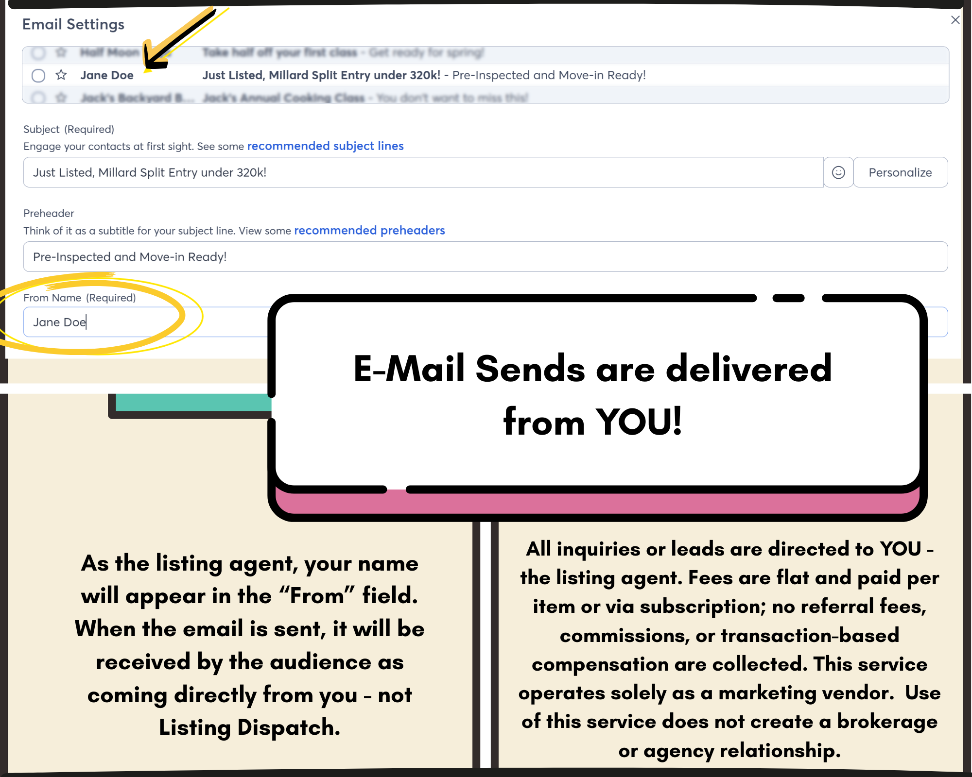 This service operates solely as a marketing vendor. All inquiries or leads generated through distributed materials are directed to the listing agent. This service does not perform, represent, or imply any real estate brokerage or agency services. Fees are flat and paid per item or through subscription models. No referral fees, commissions, or transaction-based compensation are collected.